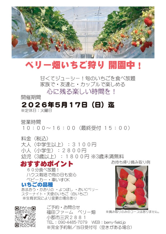 いちご狩り観光農園カフェ ベリー畑 090-4485-7079